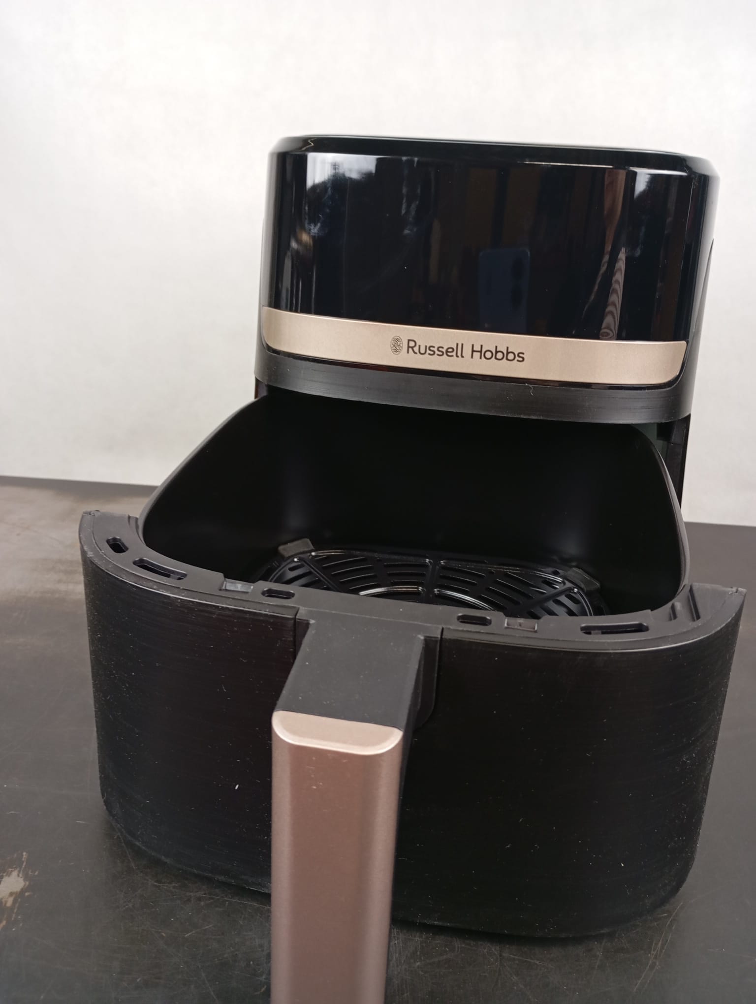 - Slim and stylish design – the design of the Russell Hobbs Satisfry hot air fryer with trendy champagne colour accents and a black, textured housing makes it a real eye-catcher in any kitchen